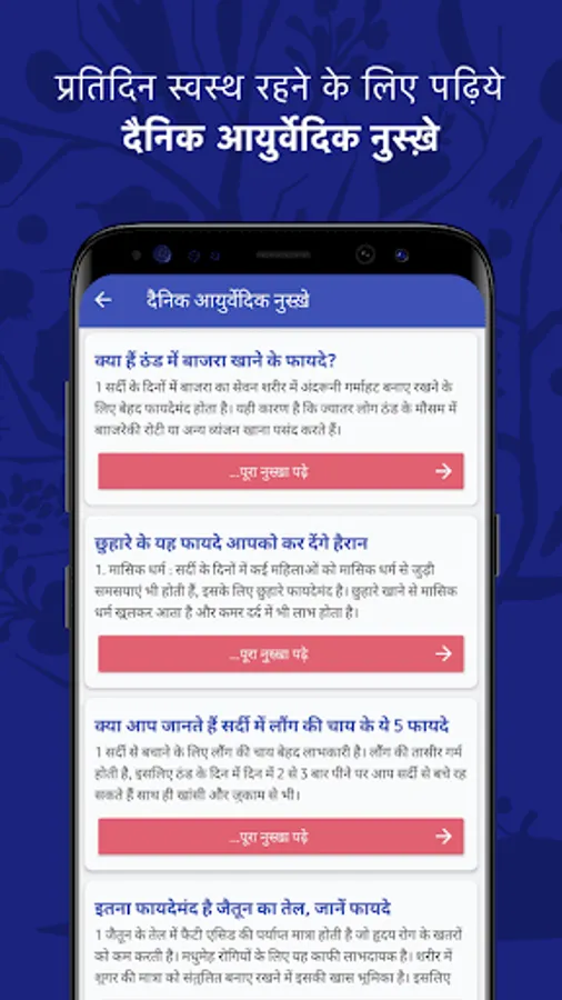 This Ayurvedic Treatment app helps you to find out ayurvedic treatment for almost every disease in simple Hindi language.