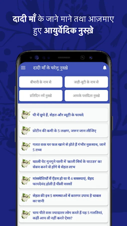 This app provide various Ayurveda tips using ingredients from your kitchen. You don't need to procure anything extra, these are the simple life hacks from the things which are readily available in your kitchen. Yet, these can have a big impact on your and your family's health and hence these are also known as Home Remedies which are mentioned in various Ayurveda Scriptures and Books.