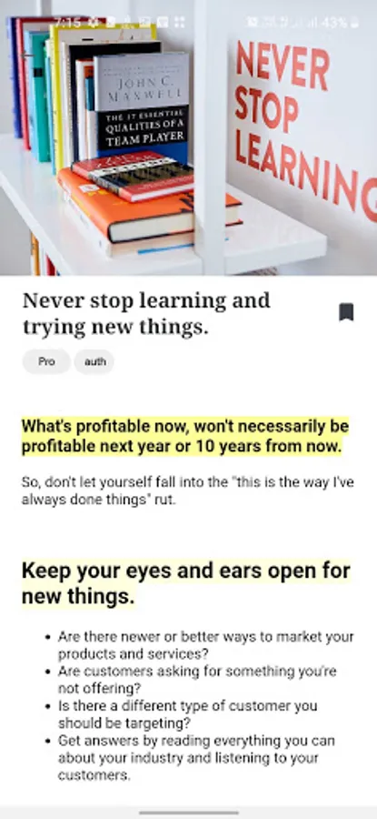 It's Free and Easy: Business Tips is a user-friendly app that's completely free to download and use. There are no subscriptions or hidden fees.