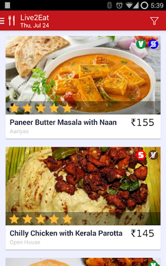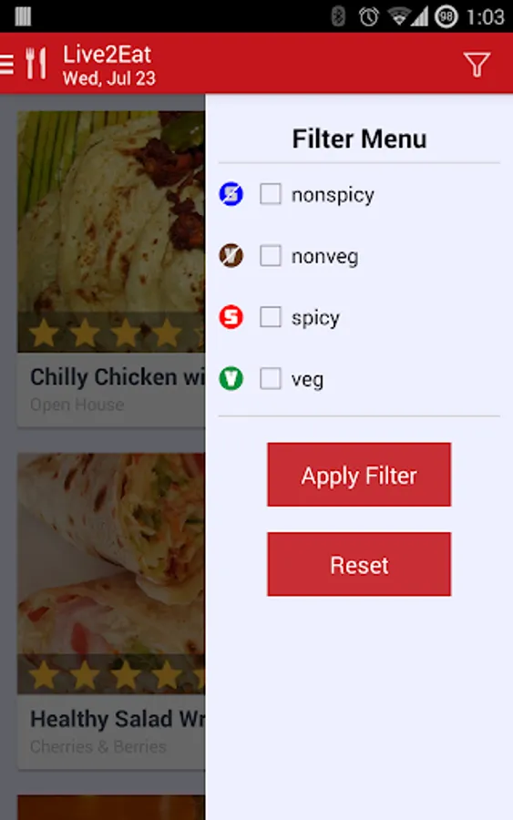 • Filter menu based on Veg, Non Veg, Spicy and other attributes