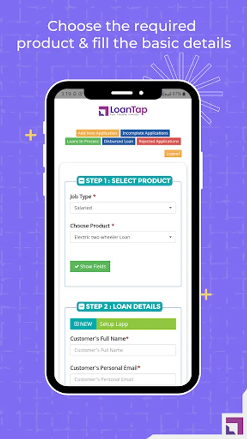 The LT - LoanTap Partner App reduces the time required for applying for a loan with LoanTap. You can help your customers avail a loan in just 5 minutes by logging in to the app & choosing the product they are interested in. Using robust technology and in house proprietary algorithms has made it