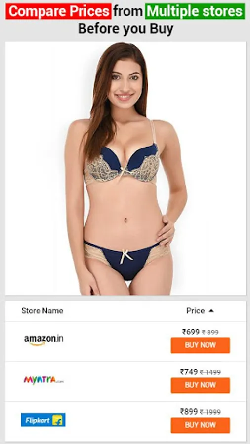 This woman’s Lingerie APP contains Bra, Panty, Bra Panty Sets, Nightwear, Shapewear and Swimwear products curated from top Indian fashion shopping sites. All types of Bra, panties, nightwear, swimwear, and shapewear genuine products are listed here with best possible price to buy online in India. Sort your search results based on style, colour, brand and price to get exactly what you need.