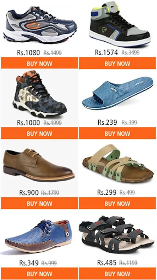 • All Footwear Categories for Men likes casual shoes, Boot cut shoes, leather shoes, sports, walking and running shoes.