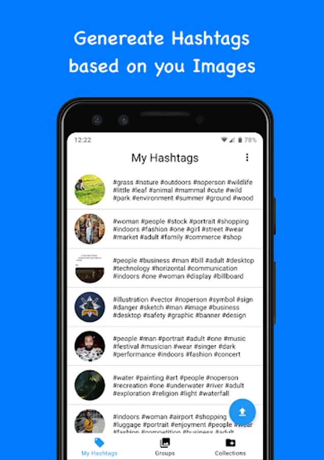 • Generate hashtags based on images.
