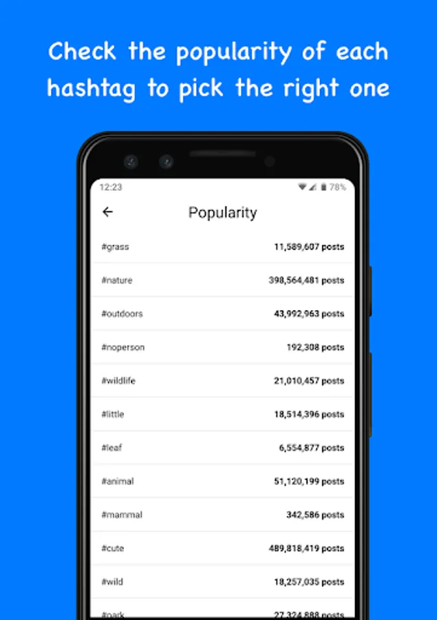 • Check the popularity of each hashtag to pick the right one.