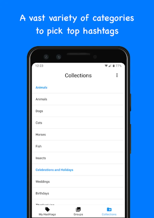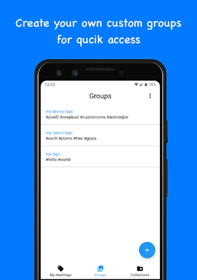 • Create custom hashtag groups for quick access.