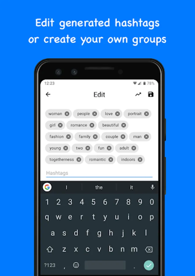 • Generate hashtags based on keywords.