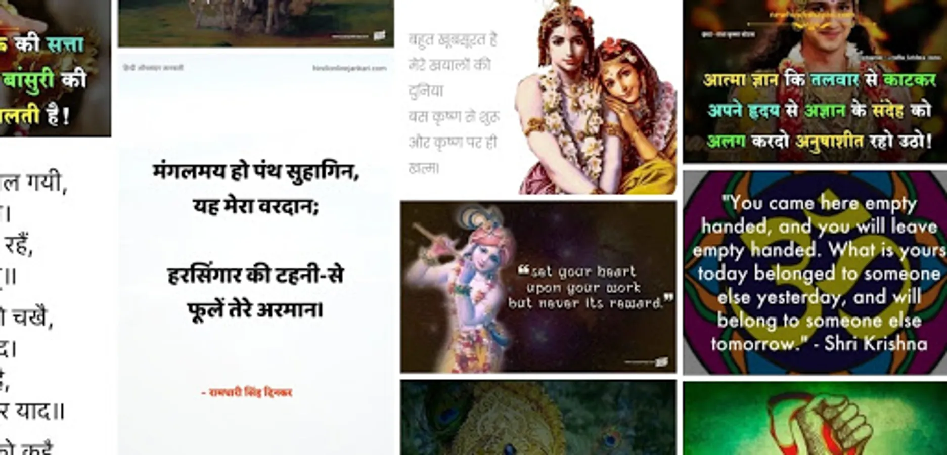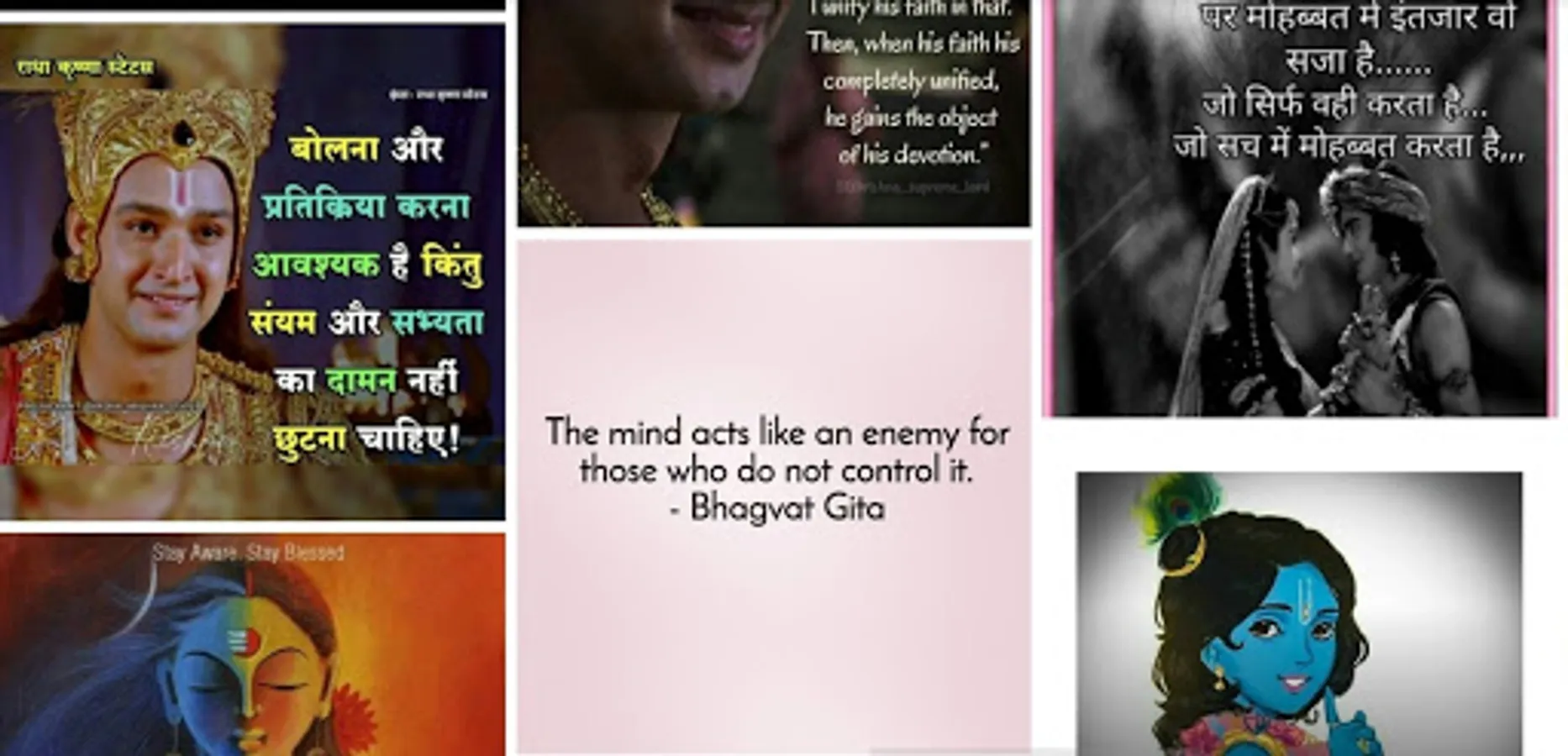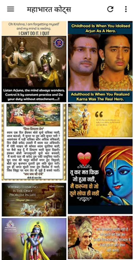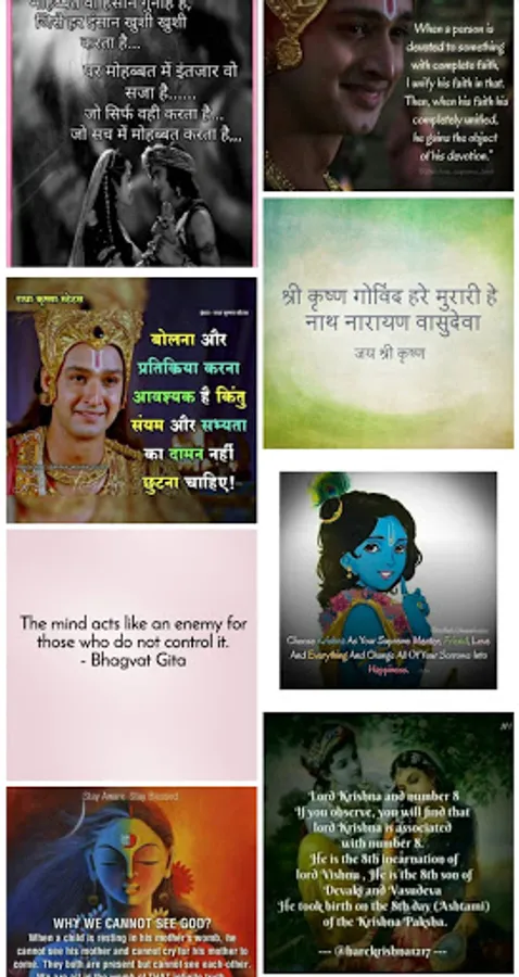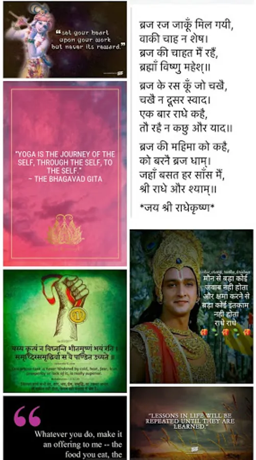 Bhagavad Gita Quotes app has a huge and ever-growing collection of quotes from Lord Krishna on life and spirituality.