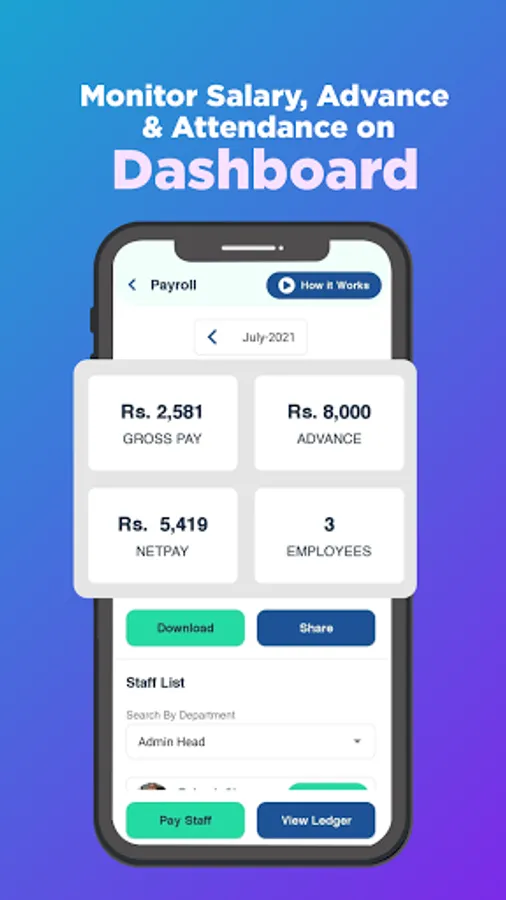 mobile phone and you can check their attendance and pagarkhata on an easy to use Dashboard.
