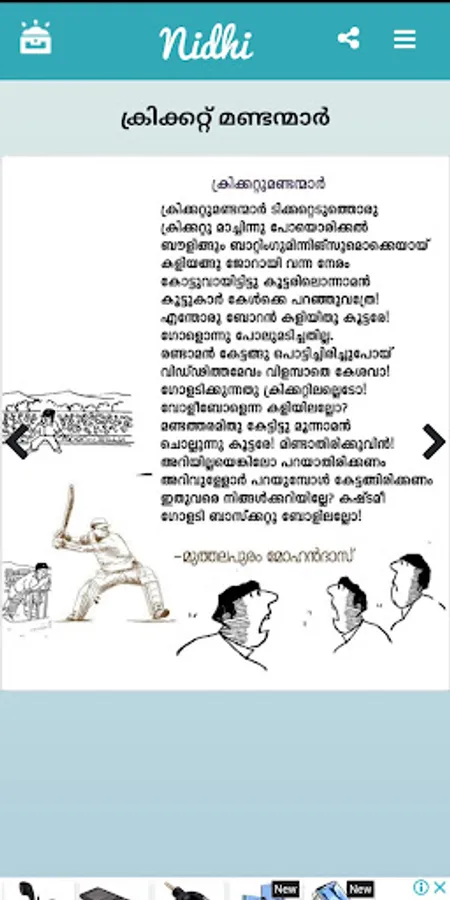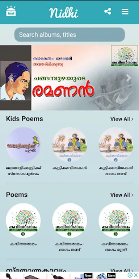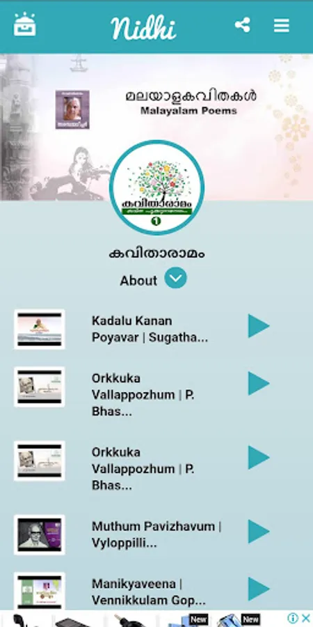 “Nidhi” App is a content aggregation platform where we add/aggregate/publish various quality content in Malayalam language. “Nidhi” in Malayalam means Treasure and we believe quality content is always a Treasure to cherish. Content includes Malayalam Poems (kavithakal) of Various Author’s, Kids Poems (kuttykavithakal), Short Stories (kathakal), Comics (chitrakathakal) etc.