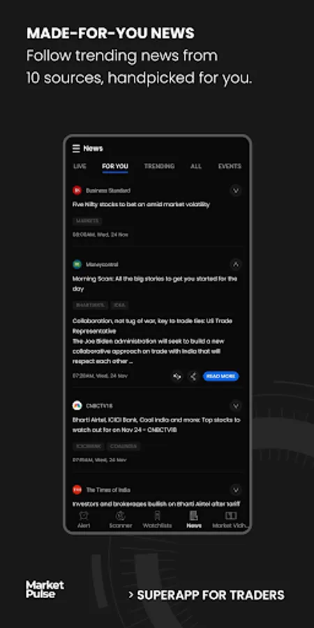 - Power your trading decisions with news on NSE India stocks and derivatives, MCX commodities, Indian stock market and global financial markets. Watch live news in a picture-in-picture mode, even as you analyze a chart or set an alert.