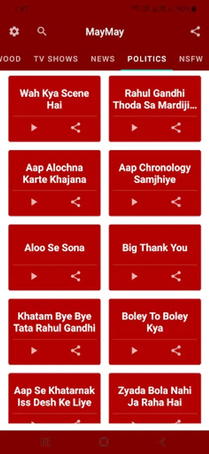 ✓ All Popular Indian Memes audio-fied into a one stop app
