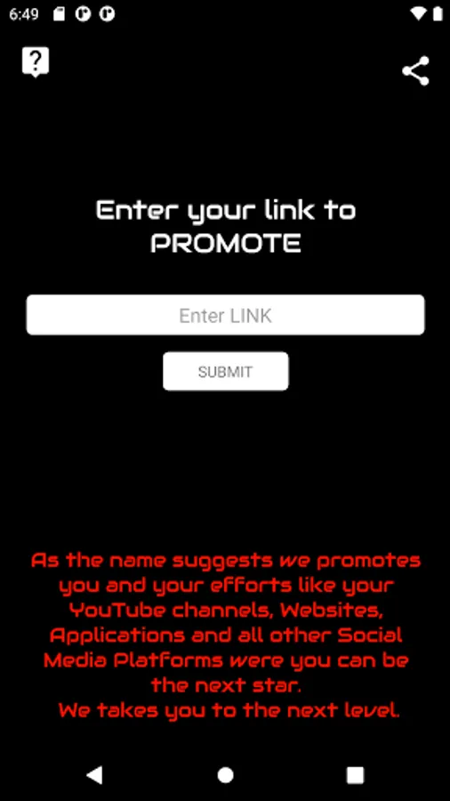 This is not an Auto bot system. The promotions received will be from genuine users only. The link posted is valid up to 48 hours only. You have to repost it for further promotions. You can post unlimited links through our service.