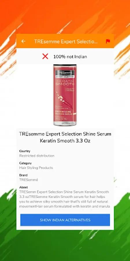 * Scan barcode of any product to determine if the country of manufacture is India or any another country.