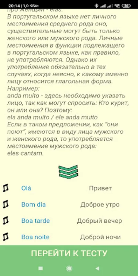 An application for learning Portuguese. The appendix describes the basic rules of the Portuguese language, there is a simulator for fixing the rules and bringing them to automaticity. The offer is suitable for beginners to learn Portuguese, as well as for those who are already a little familiar with it. The app is free. It has a subscription that allows you to not view ads and use all services calmly.