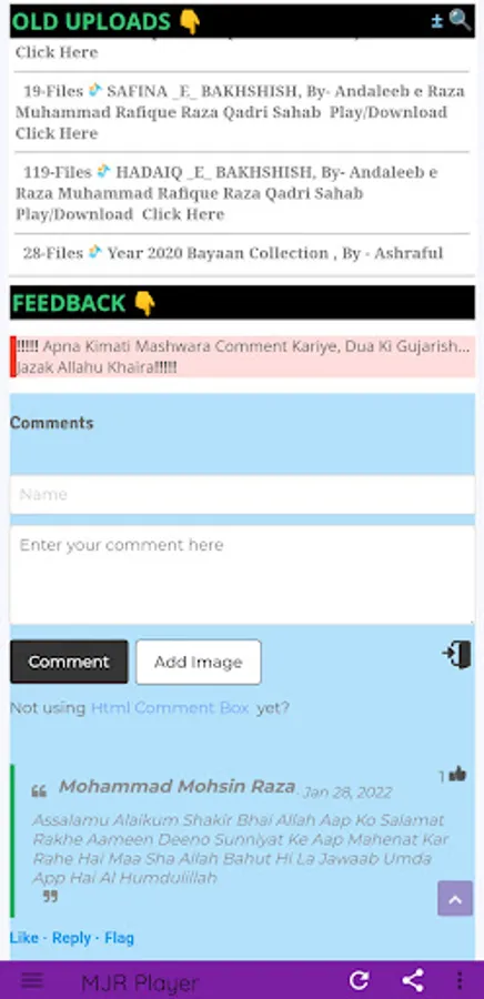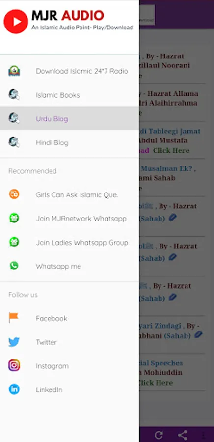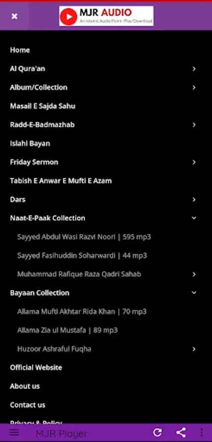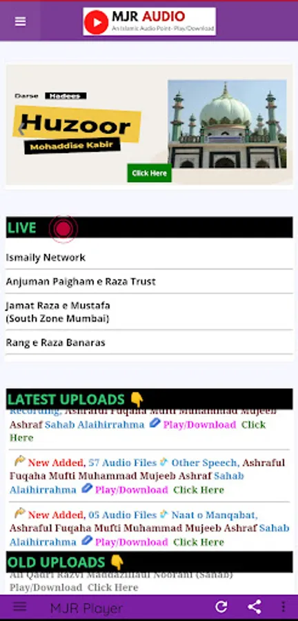 Chunki Islam Me Video Haram Hai Isliye Humne Ek Aesa Application Banaya Jaha Par Olma E Ahlesunnat Ke Behtareen Naat O Bayanat Ko Audio ki Shakal Me'n Online Suna Ja Sakta Hai.