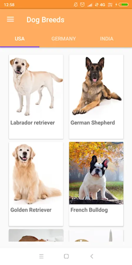 •USA breeds: Labrador Retriever, German Shepherd, Golden Retriever, French Bulldog, Bulldog and Beagle