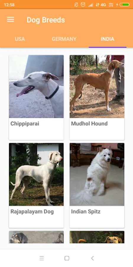 •Indian breeds: Chippiparai, Mudhol Hound, Rajapalayam Dog, Indian Spitz, Gaddi Kutta and Combai