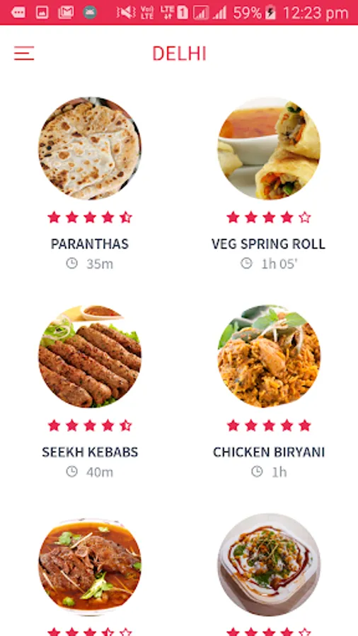 Delhi recipe like Paranthas, Veg Spring Roll, Seekh Kebabs, Chicken Biryani, Nihari and Dahi Papdi Chaat.