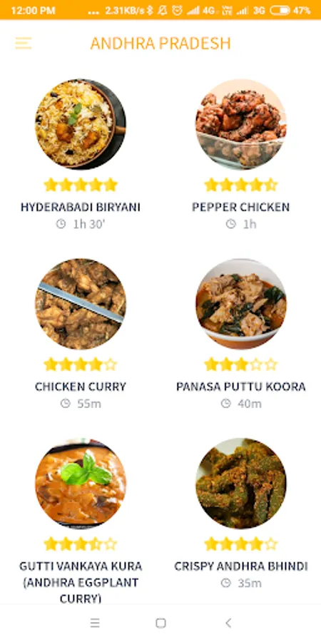 • Andhra Pradesh recipe:- Andhra Pradesh recipe like Hyderabadi Biryani, Pepper Chicken, Chicken Curry, Panasa Puttu Koora, Gutti Vankaya Kura and Crispy Andhra Bhindi.