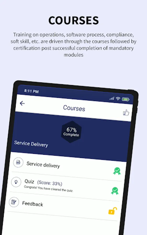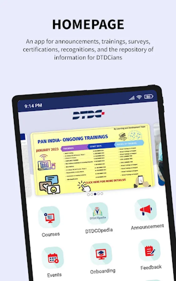 Welcome to the learning app of DTDC! If you are a DTDCian, it’s a must have app for you. This app will be used for training completion, compliance policies, company news, announcements and much more. With this app, DTDC can ensure that it’s employees are fully aware of the happenings and important news within the company.