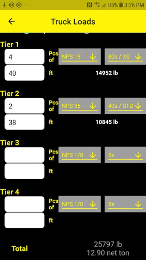 Calculate the weight of a truckload of steel pipe.
