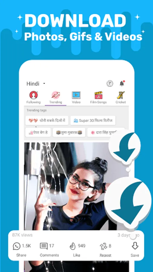 Download and Share FREE WhatsApp Status Videos, Funny Short Videos, Talk To Strangers, Latest Events and Trends in 15 Indian languages.