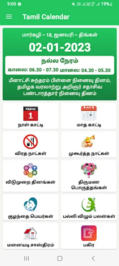 This calendar for 2023 is the 2023 calendar new with all month calendar. Tamil calendar 2023 is highly useful for Hindu people, also called as Hindu calendar. Hindu calendar 2023 in tamil gives all the important calendar of tamil panchangam with precise fasting details. This app is very useful for 2023 festivals and tamil holiday details.