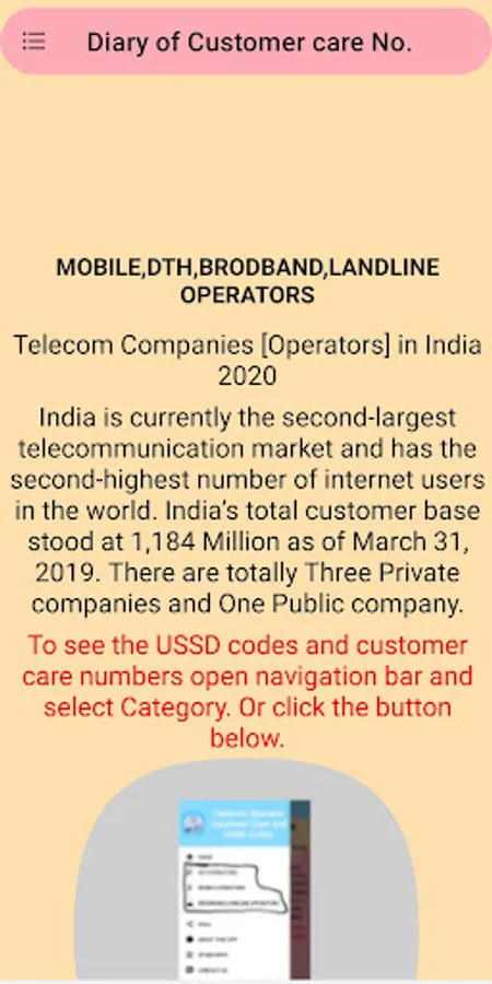 THIS APP IS MAINLY CREATED FOR EASY TO KNOW ALL HELPLINE NUMBERS OF ALL OVER INDIA AND CUSTOMER CARE NUMBERS , USSD CODES AND CUSTOMER SERVICE THROUGH SMS OF NETWORK AND DTH COMPANIES. THIS APP IS FOR ONLY INDIAN NETWORK OPERATORS (except India it will not work in any other countries). THIS APP IS VERY SIMPLE TO USE AND UPDATES WILL BE GIVEN REGULARLY.