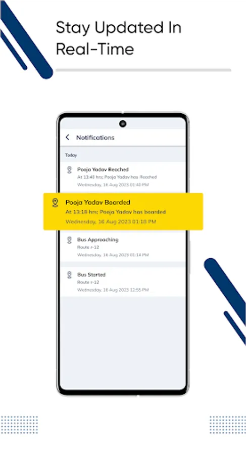- Notifications: SafeBus triggers notification when the bus is nearing stoppage point and shows ETAs for more accuracy.