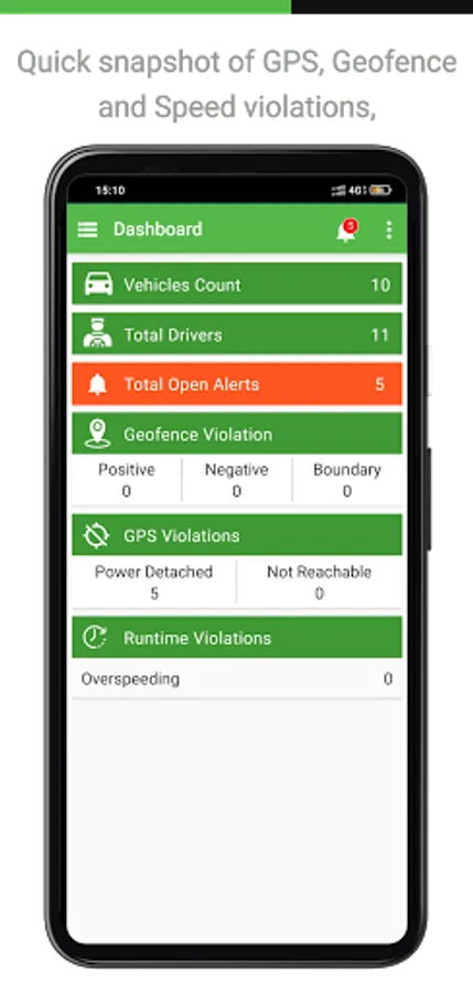 - Tracker app dashboard offers you quick summary of GPS and Geo-fence violations details.
