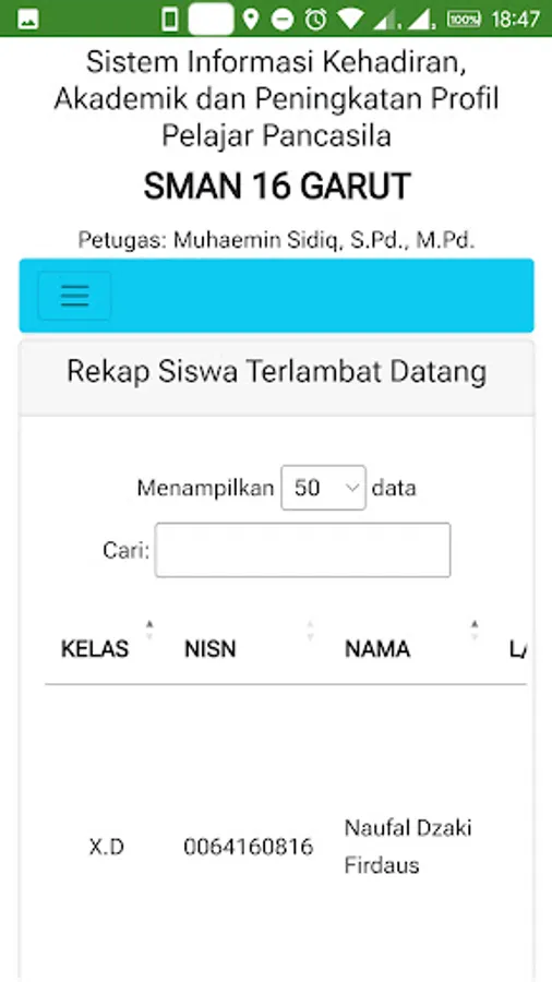 Problems that occur in many schools, including at SMAN 16 Garut, there are still many students who arrive late at school, with the recording of lateness is still manual, making it difficult to follow up to improve discipline. Likewise, attendance records are still manual, making it difficult to solve problems for students who are absent without explanation.