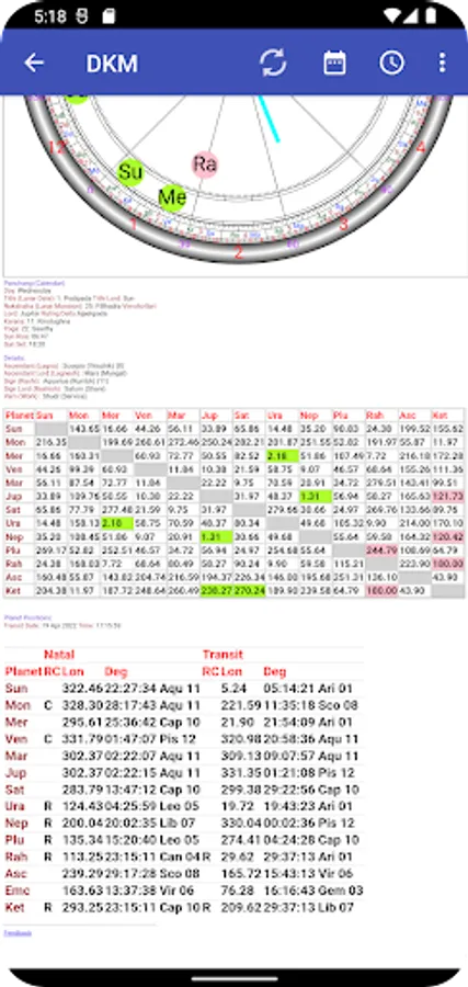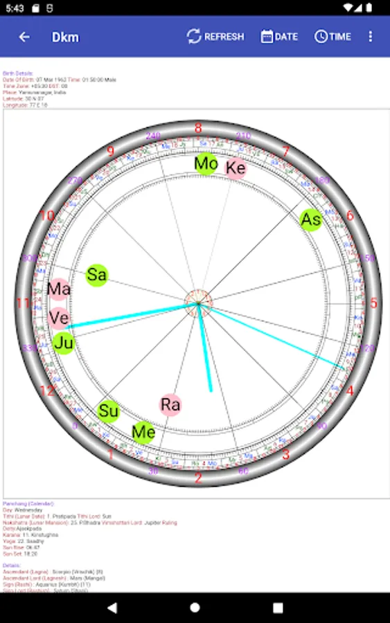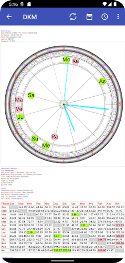 Vedic Clock calculates the Planets Position based upon birth details and draws Horoscope (Janam Patri) based upon Vedic astrology in Circular form.