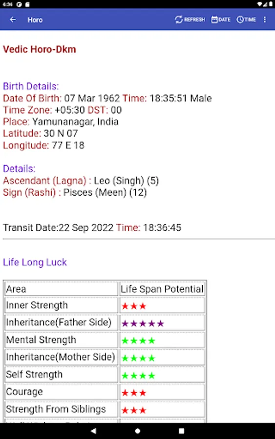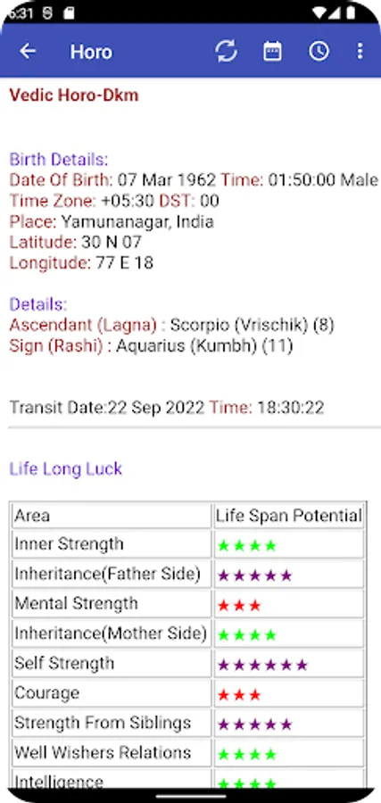 VedicHoro predicts lifelong potential luck based upon planet position at the time of birth and estimates current situation based upon transit of planets. Forecast can be known for any date and time based upon each individuals birth details.