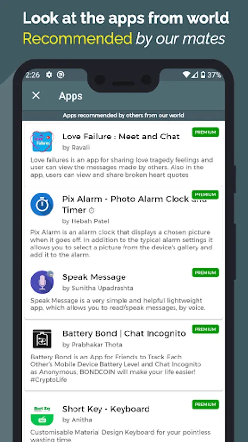 - Recommended apps from world users
