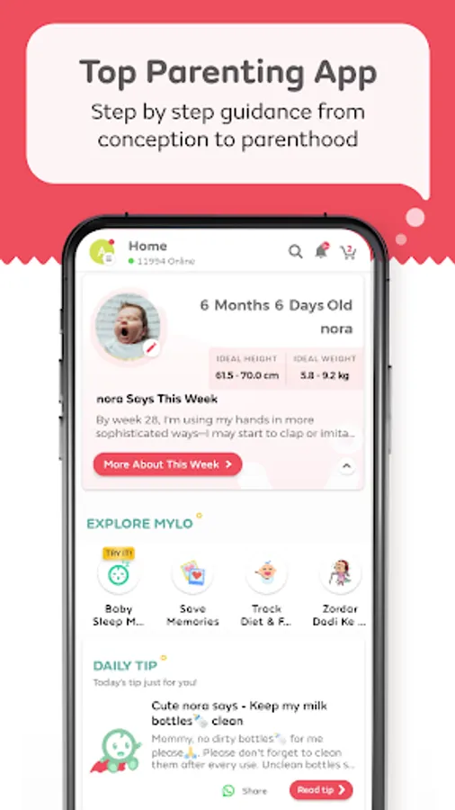 Once your newborn arrives, Mylo turns into your daily parenting guide, with tools like the baby growth tracker & baby diet chart, to support you through your first year as a new parent. Mylo will be by your side once your baby turns ONE! From interesting activities for your toddler to informative articles on concerns like speech delay, walking delay, potty training, weight issues of your child – you will get it all on Mylo!