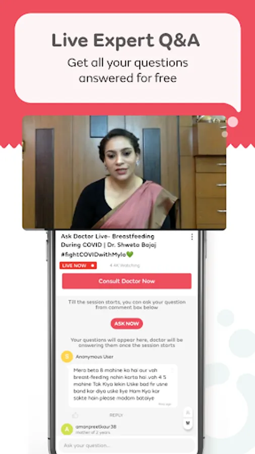 You can ask questions that you can't wait to ask your doctor and get answers 24*7 🕘 from a super-supportive member on the Mylo Baby care & Pregnancy App WITHIN 5 MINUTES.