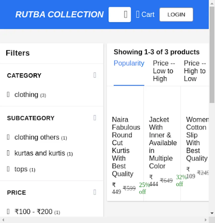 Welcome to the fast-paced online & digital world of e-commerce for free. No subscription costs and we door deliver too! Rutba Collection, a friendly neighbourhood store, is now up and running for online shopping.