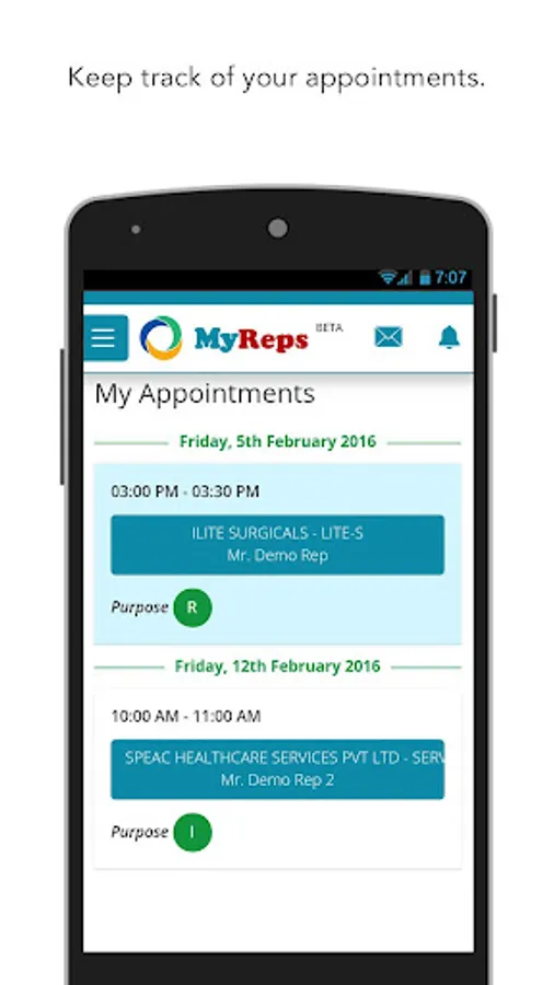 Until now, doctors have lacked a standardized tool to efficiently manage their interactions with sales reps. Reps will stack up in patient-waiting room or parking lot hoping to see doctor with unsure of accessibility details of doctor. Most of the times reps are welcomed in as an uninvited guest than expected visitor. Some times doctors have been in need of particular sample/information and unable to contact those Reps due to lack of contact information.