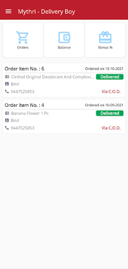 This is the delivery boy application for mythri where delivery boy will be assign a delivery where he want to deliver a product and here they update product status is delivered or not and here there he will get there wallet balance