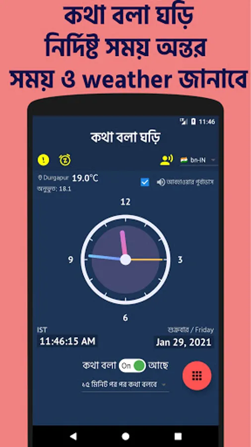 Talking Clock - Bangla Talking Clock / Speaking Clock or Speaking Clock app can be temporarily turned on or off with just a click of a button.
