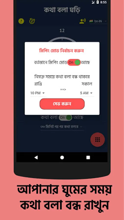 Talking Clock - Bangla Talking Clock / Speaking Clock / Time Talking Clock or Speaking Clock app you can specify your sleep time - at that time it will stop talking.