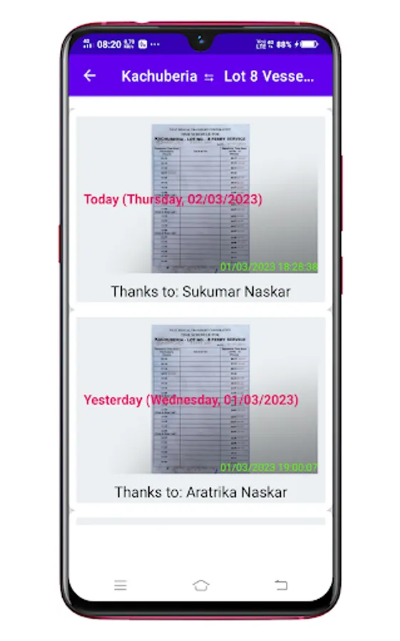 (Ganga Sagar) Kachuberia ⇆ (Kakdwip) Lot 8 Vessel Time