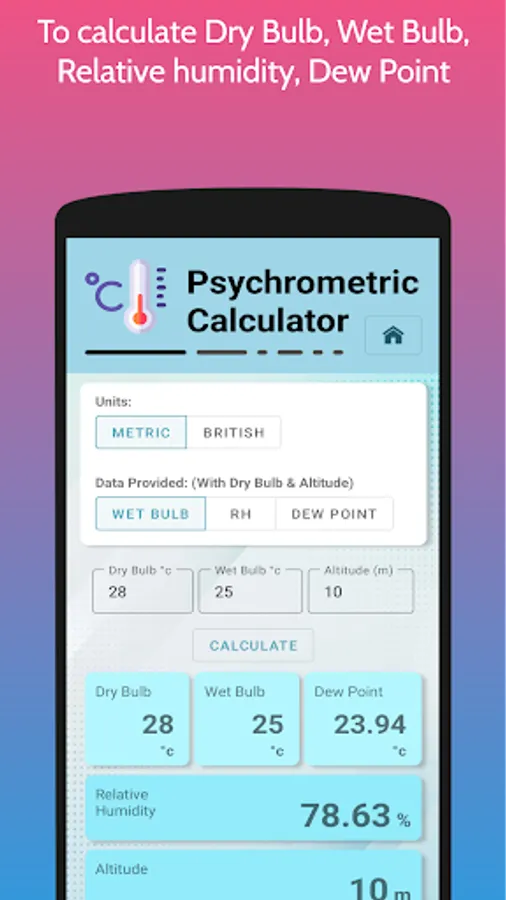 To calculate WetBulb Temperature, Relative Humidity, Dew Point, Atmospheric Pressure, Saturated Vapour Pressure, Partial Vapour Pressure, Humidity Ratio, Enthalpy, and Specific Volume.
