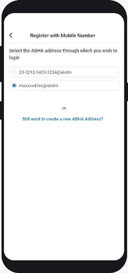. Create an easy to remember ABHA Address (username@abdm) with mobile number, email ID or ABHA number.