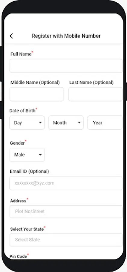 . Option to Edit Profile details including address and update the mobile no or email with respective OTP validation.