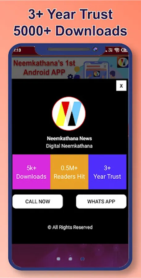 This app free for citizens and it has various News information of what happening in the Neem ka thana city.