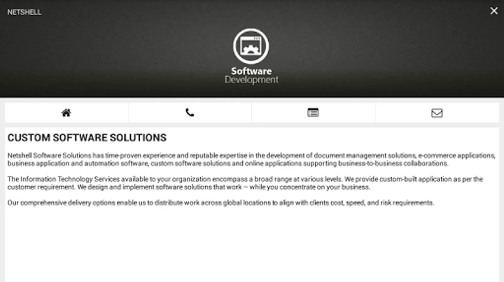Netshell Software Solutions is a web development firm based in India. Netshell website development company in Srinagar has made its impressive impression in the field of web development and search engine optimization not only in India but around the world. we offer effective and tailor made solutions to our customers in web designing , search engine optimization (SEO), web hosting , email hosting . we also offer products like account management , Newsletter Solution , Online Travel Solution , Hotel Management , HR Management, CRM and many more products which you need in making your office work more accurate and fast.