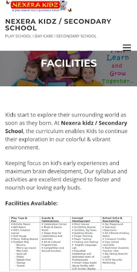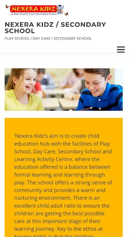 where the education offered is a balance between formal learning and learning through play. The school offers a strong sense of community and provides a warm and nurturing environment. There is an excellent child adult ratio to ensure the children are getting the best possible care at this important stage of their learning journey. Key to the ethos at Nexera Kidz’s is that the children actively lead their own development with no pressure on them in any way.’