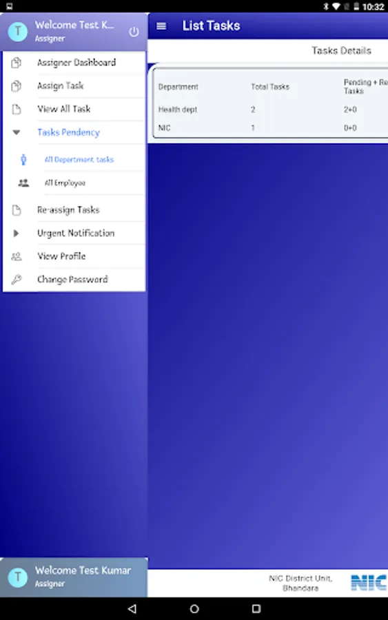 This app is to designed to help District Administration for assigning various Task to all HODs of the district. This task can be assign by District Administration on any subject wise, giving its timeline to concern HOD. District Administration if feels that Task is given to wrong HOD, then he has the facility to Pull the Task from HOD’s dashboard. HOD on his dashboard can see all the task assigned to him on his Dashboard. After completing the Task he will update status of Task as Completed / Partially Completed / Pending. If any Task is not related to him it can be return back, this facility is also given. Reminder can be given by District Administration whose Time limit is over. This app is having 2 Level authentications